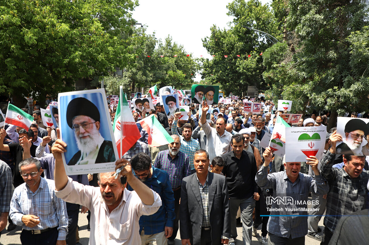 مردم اراک، تبریز و همدان همگام با سراسر کشور امروز _جمعه بیستودوم خرداد_ تجاوز رژیم صهیونیستی به حریم کشور و شهادت جمعی از هموطنان را محکوم کردند.