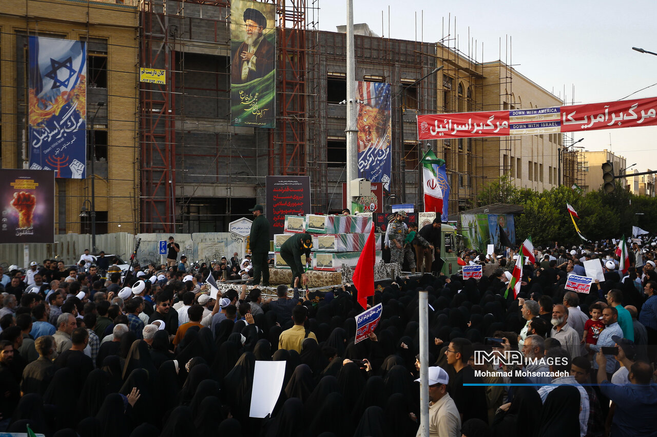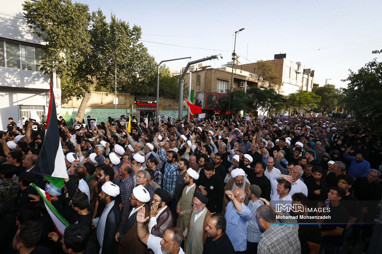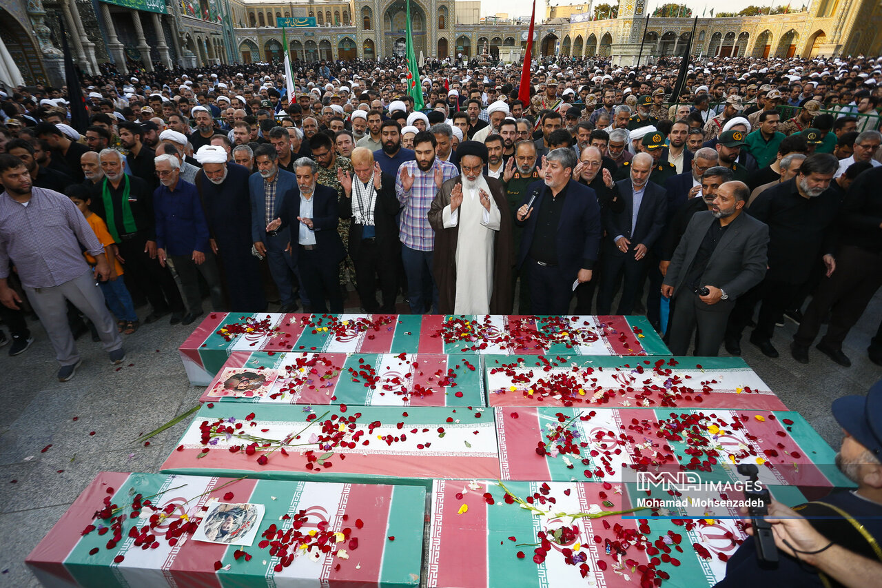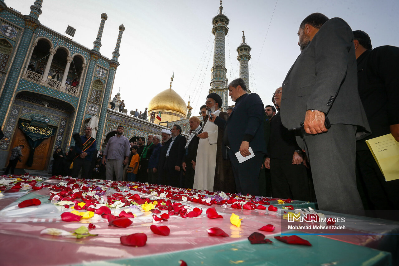 مراسم تشییع و تدفین شهدای تجاوز وحشیانه رژیم صهیونیستی امروز _دوشنبه بیستوششم خرداد_ از مصلای قدس تا حرم مطهر حضرت معصومه (س) برگزارشد.