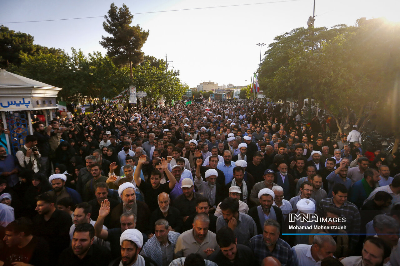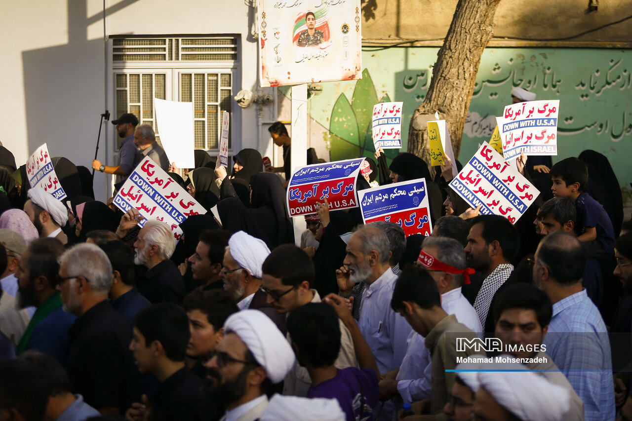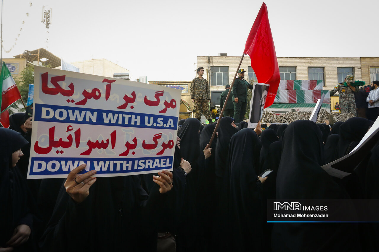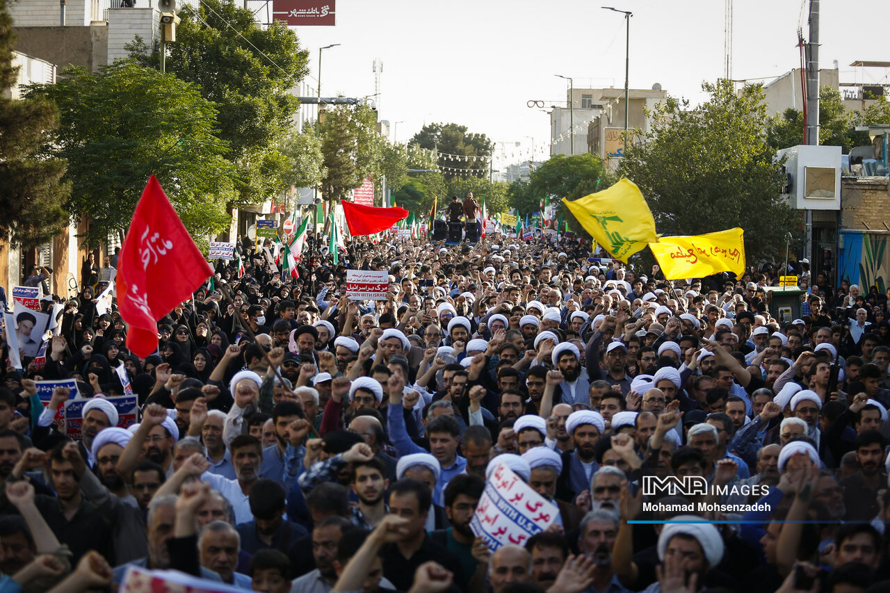 مراسم تشییع و تدفین شهدای تجاوز وحشیانه رژیم صهیونیستی امروز _دوشنبه بیستوششم خرداد_ از مصلای قدس تا حرم مطهر حضرت معصومه (س) برگزارشد.