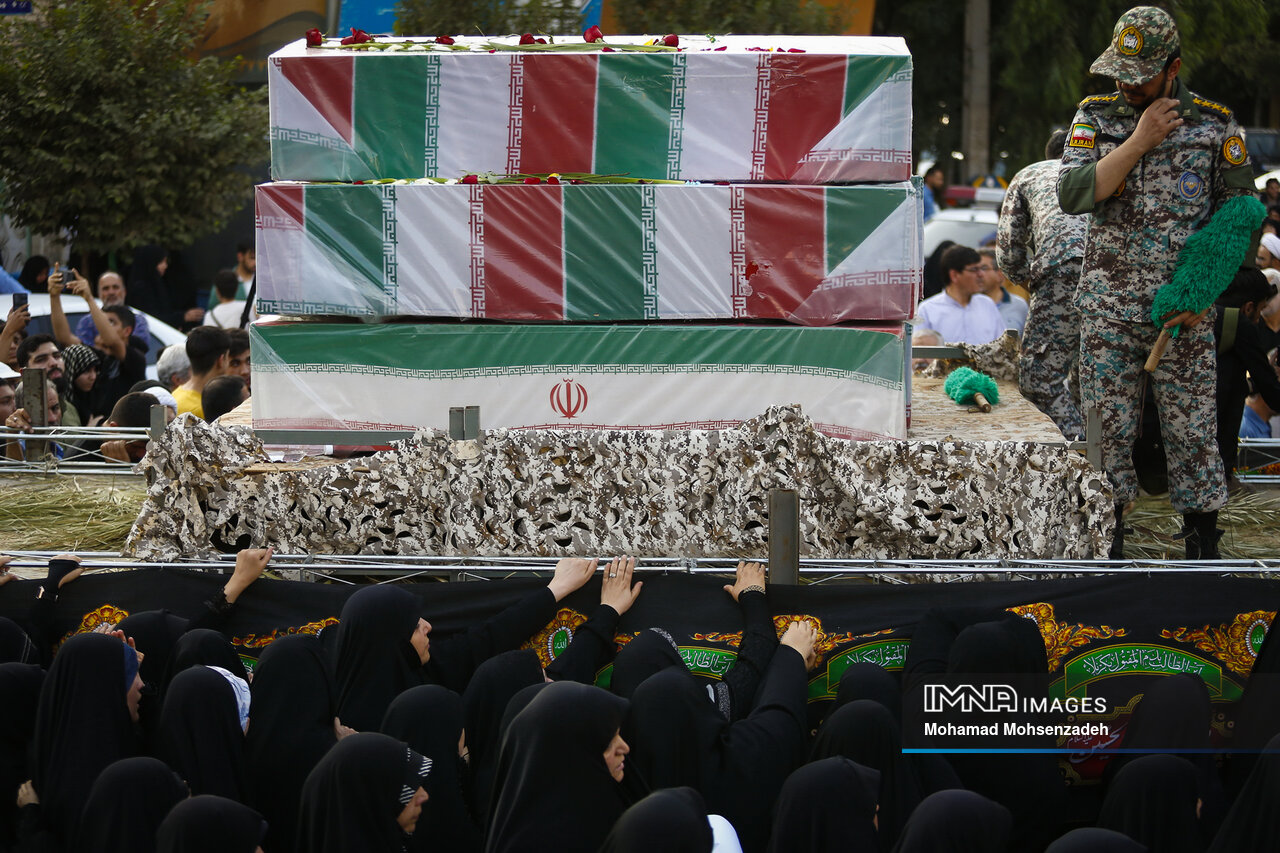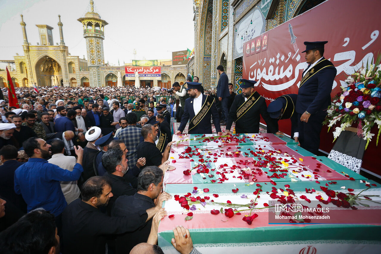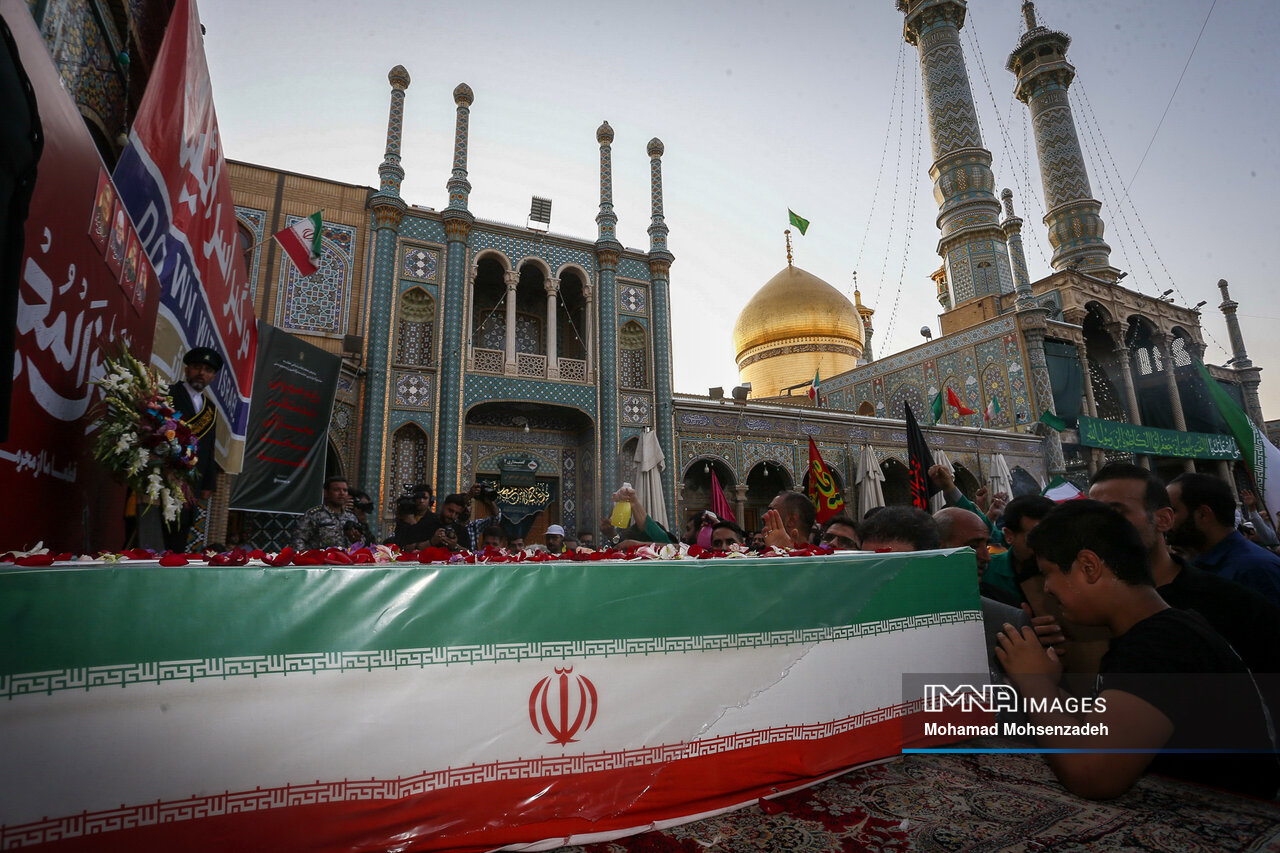در این مراسم پیکرهای پاک شهیدان ستوان یکم پاسدار امیرحسین حسنی اقتدار، پاسدار علی کردلو و سروان پاسدار مجتبی دولتی از نیروی هوافضای سپاه و سرتیپ دوم غلامعلی نجفی, سرهنگ دوم جابر کامرانی، سرهنگ محمد علیزاده، ستوان رضا پارسا و سرباز وظیفه رسول رضایی از پدافند هوایی حضرت معصومه (س) ارتش جمهوری اسلامی ایران در شهر مقدس قم تشییع شدند.