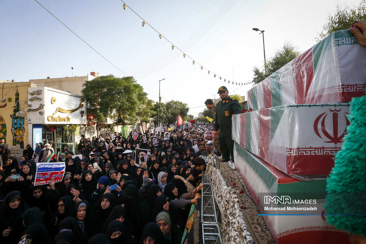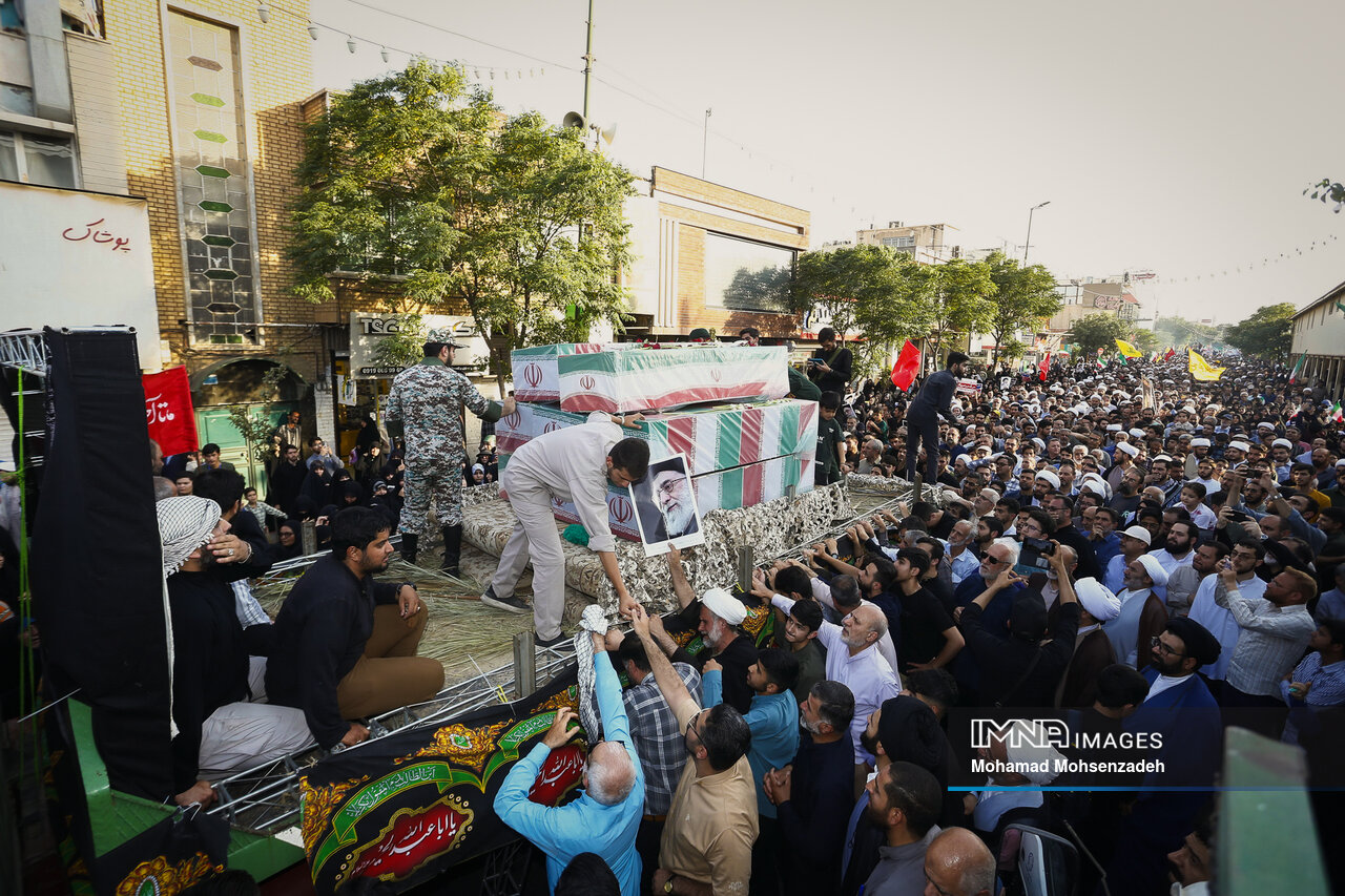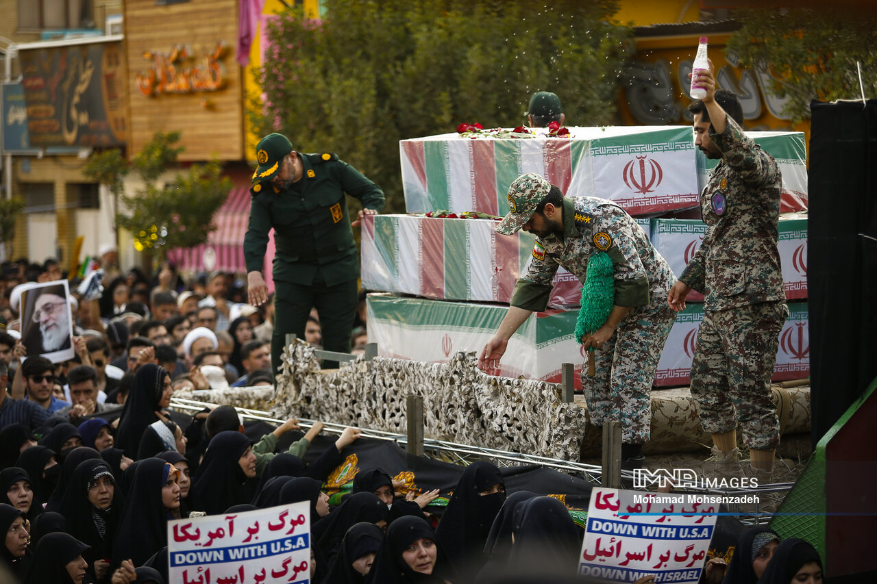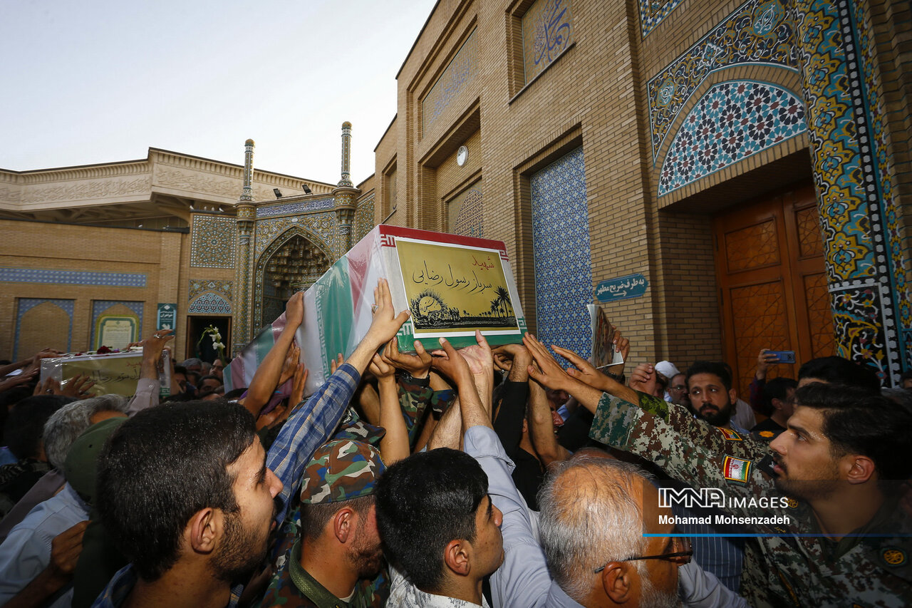 در این مراسم پیکرهای پاک شهیدان ستوان یکم پاسدار امیرحسین حسنی اقتدار، پاسدار علی کردلو و سروان پاسدار مجتبی دولتی از نیروی هوافضای سپاه و سرتیپ دوم غلامعلی نجفی, سرهنگ دوم جابر کامرانی، سرهنگ محمد علیزاده، ستوان رضا پارسا و سرباز وظیفه رسول رضایی از پدافند هوایی حضرت معصومه (س) ارتش جمهوری اسلامی ایران در شهر مقدس قم تشییع شدند.