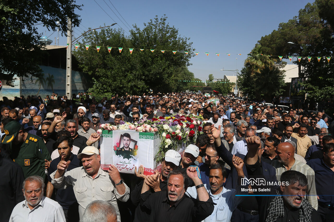 پیکر مطهر شهیدان حسین انواری، سید محسن موسوی و حسین اسحاقی از شهدای تجاوز رژیم صهیونیستی به خاک کشورمان صبح امروز _دوشنبه دوم تیر_ با حضور پرشور گروههای مختلف مردم در شهرستان نجفآباد اصفهان تشییع شد.