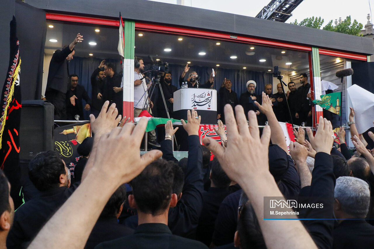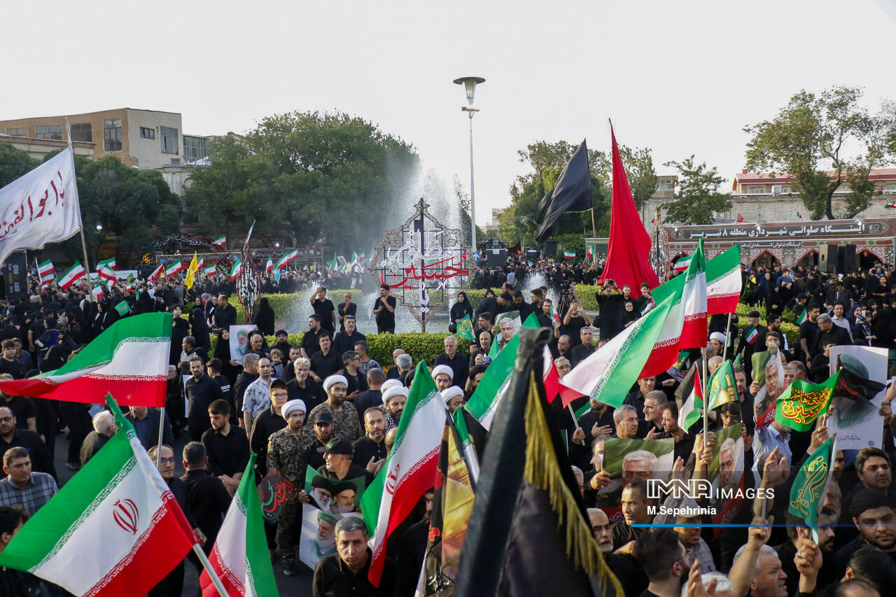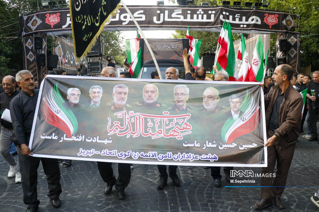 هیئتهای عزاداری تبریز در آستانه تاسوعا و عاشورای حسینی با تجمع و عزاداری در حدفاصل میدان شهدا و میدان ساعت تبریز اقدامات تجاوزکارانه رژیم صهیونیستی را محکوم کردند.