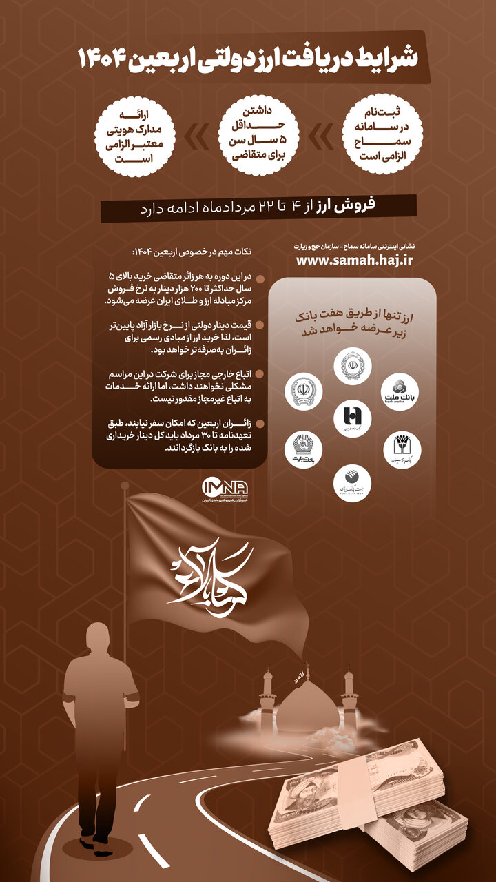 مهمترین شرایط دریافت ارز دولتی اربعین ۱۴۰۴ به شرح زیر است: