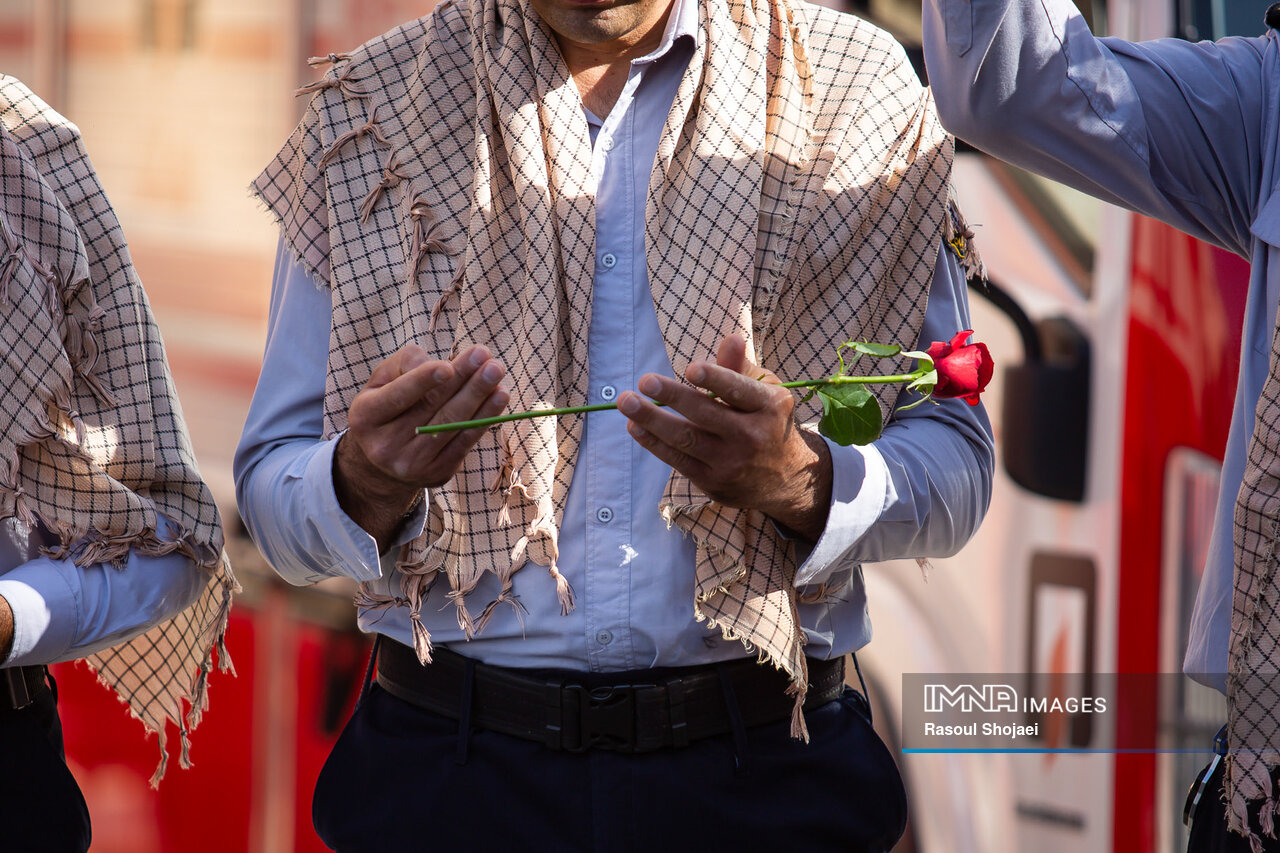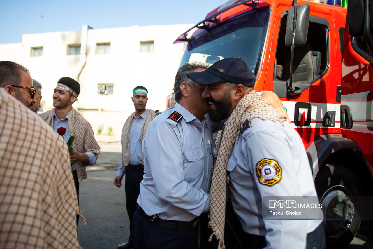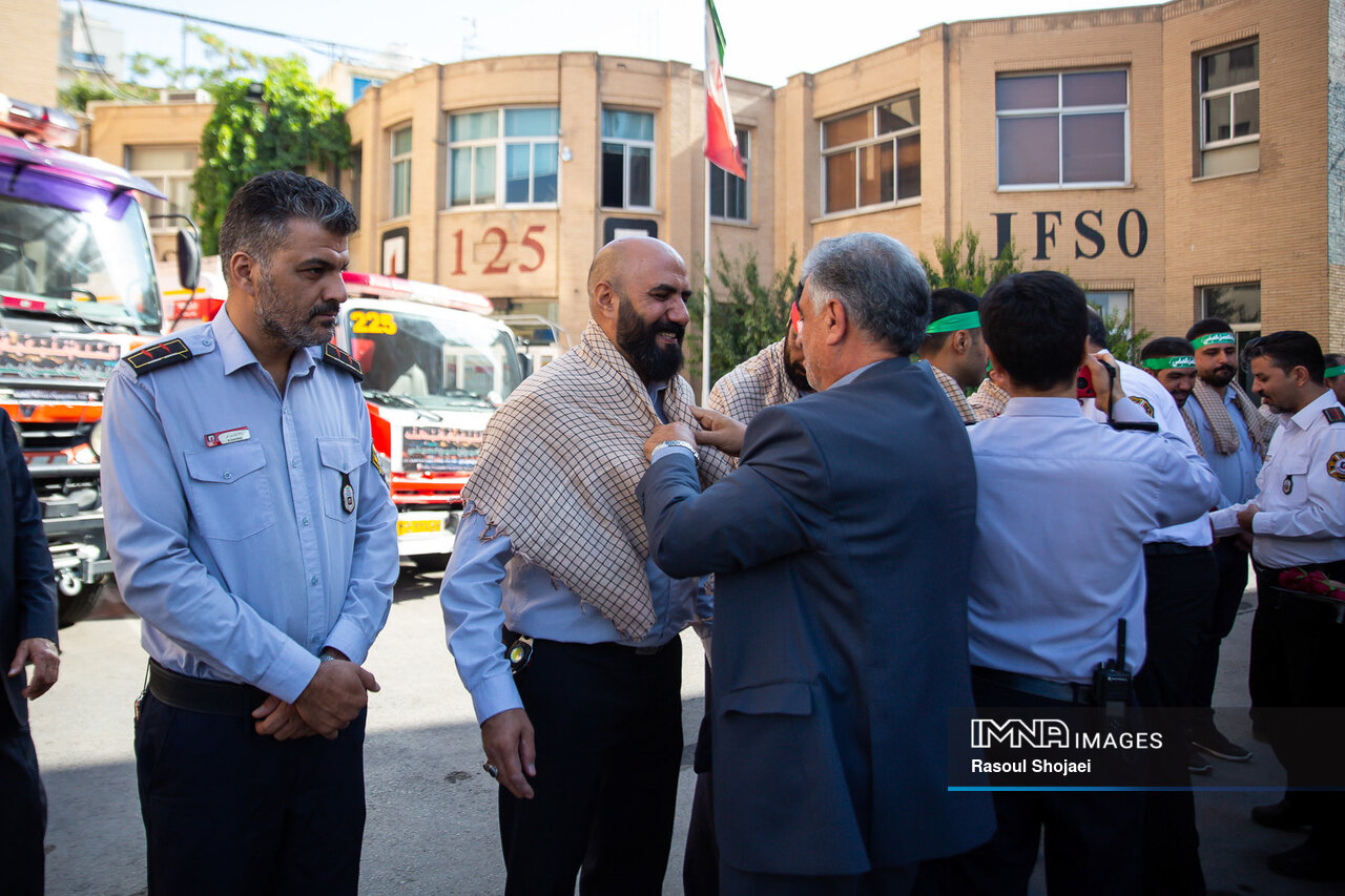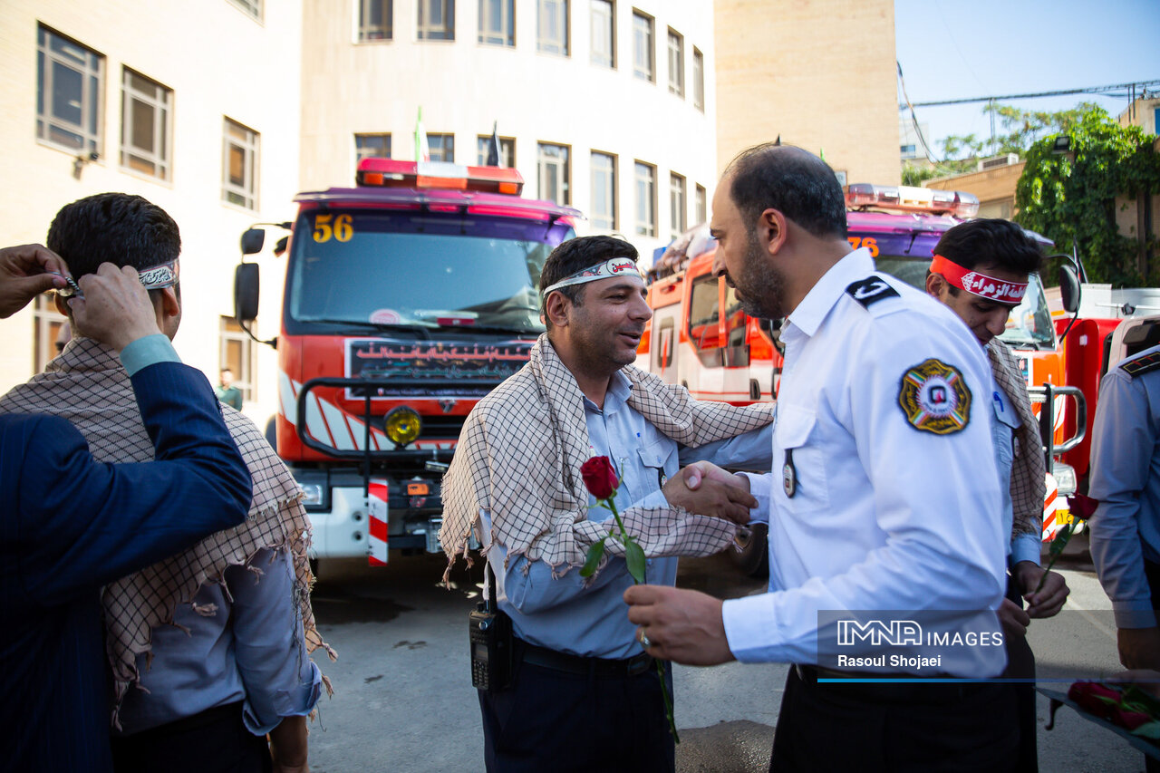 آتشنشانان سازمان آتشنشانی و خدمات ایمنی شهرداری اصفهان صبح امروز _یکشنبه پنجم مرداد_ به منظور خدمترسانی به زائران اربعین حسینی عازم کربلای معلی شدند.