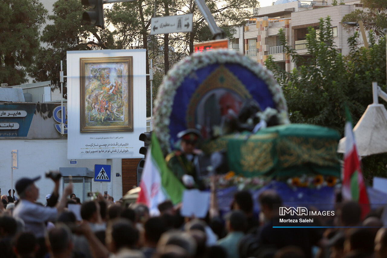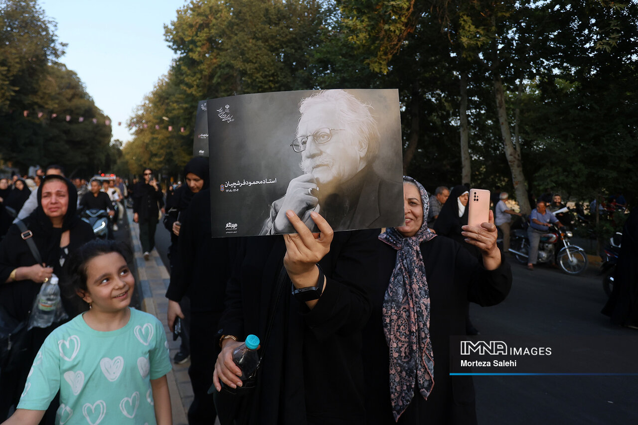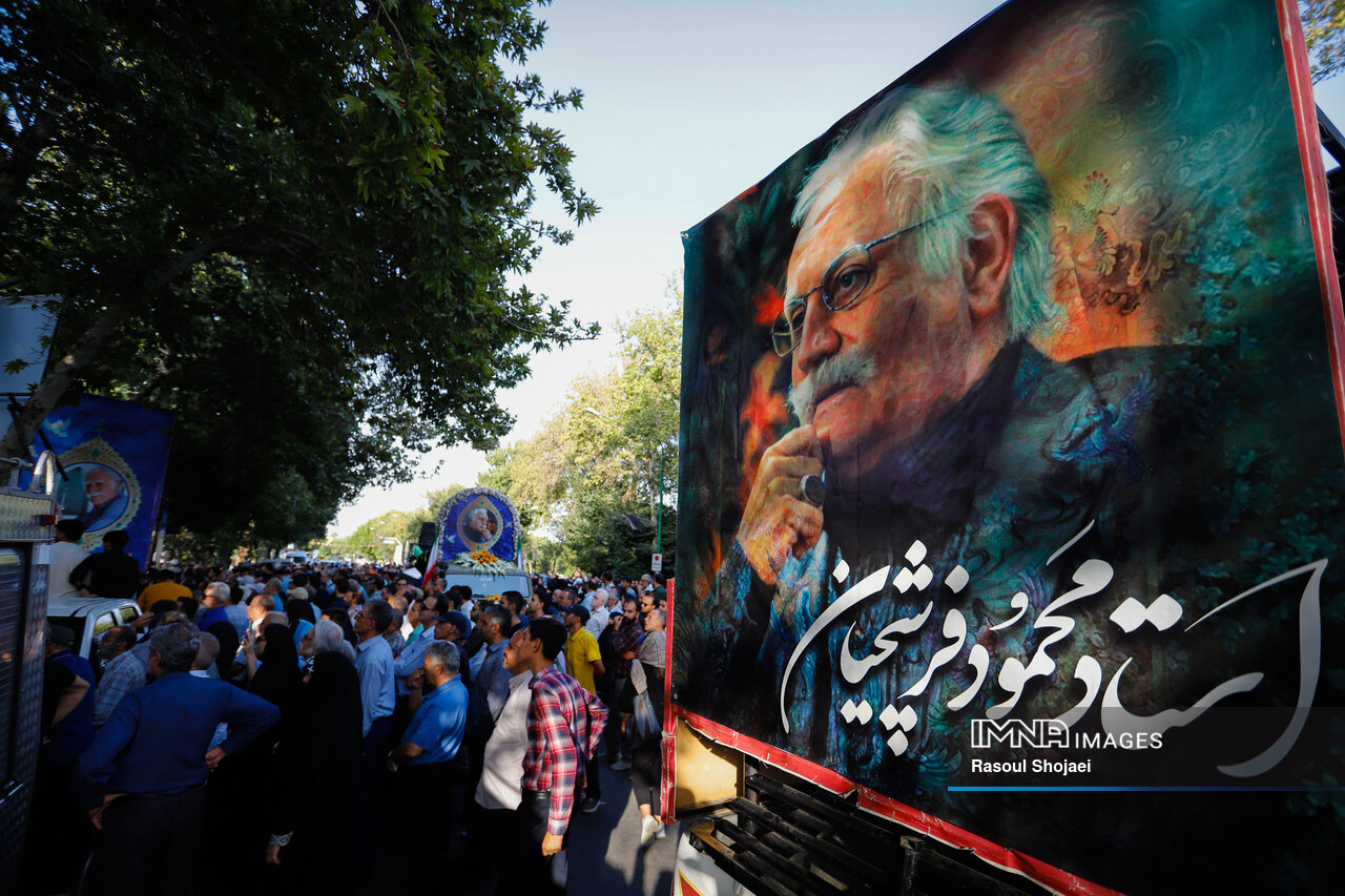 مراسم تشییع پیکر استاد محمود فرشچیان عصر امروز _دوشنبه بیستوهفتم مرداد_ با حضور گروههای مختلف مردم از هنرستان هنرهای زیبا به سمت آرامگاه صائب برگزار شد.