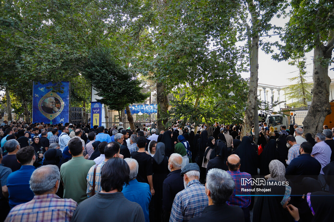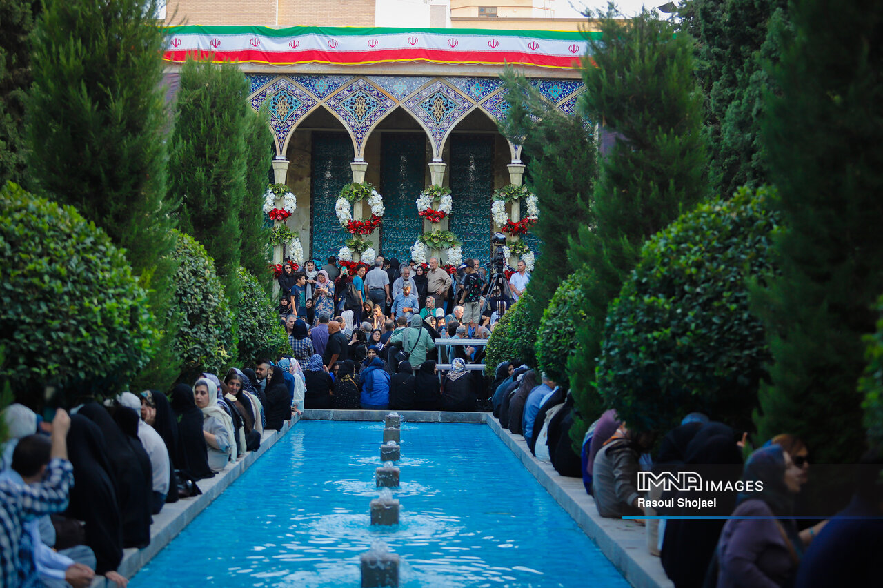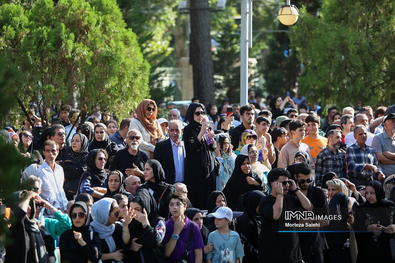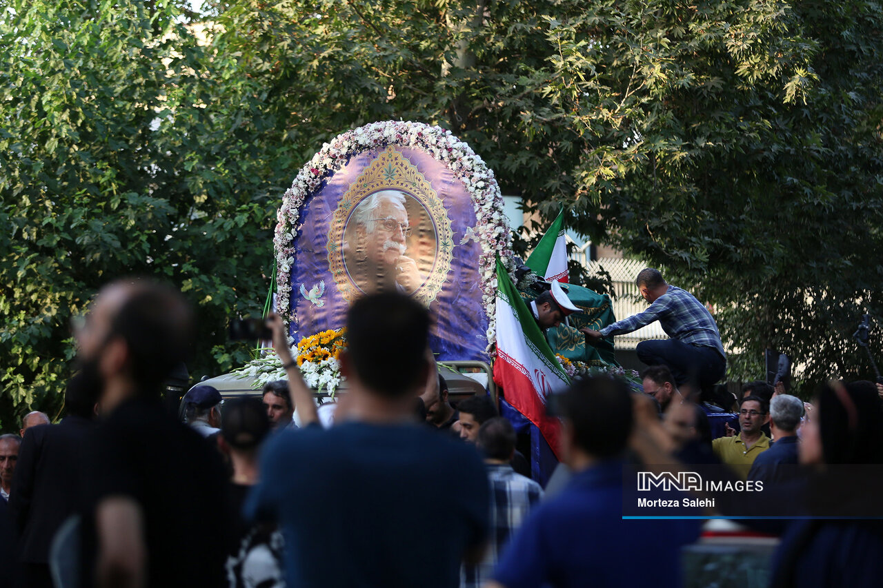 مراسم تشییع پیکر استاد محمود فرشچیان عصر امروز _دوشنبه بیستوهفتم مرداد_ با حضور گروههای مختلف مردم از هنرستان هنرهای زیبا به سمت آرامگاه صائب برگزار شد.