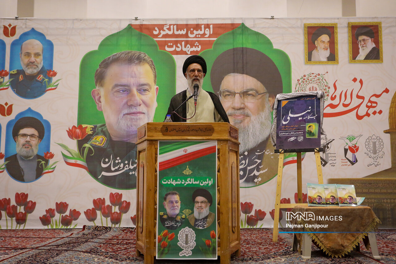 مراسم گرامیداشت اولین سالگرد شهادت شهیدان مقاومت سید حسن نصرالله و سردار عباس نیلفروشان عصر امروز _پنجشنبه سوم مهر_ با حضور سرلشکر سید یحیی رحیمصفوی مشاور و دستیار عالی فرماندهکل قوا در گلستان شهدای اصفهان برگزار شد.