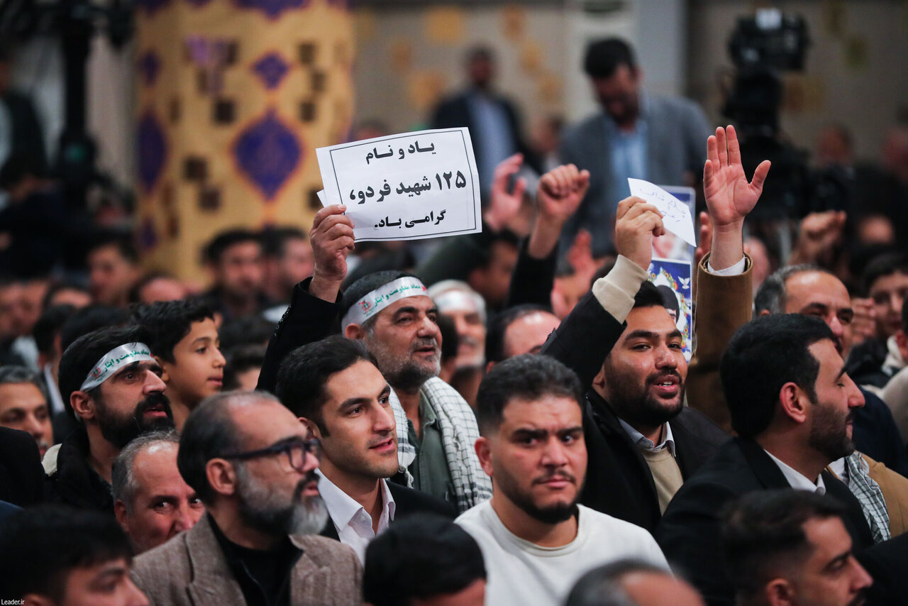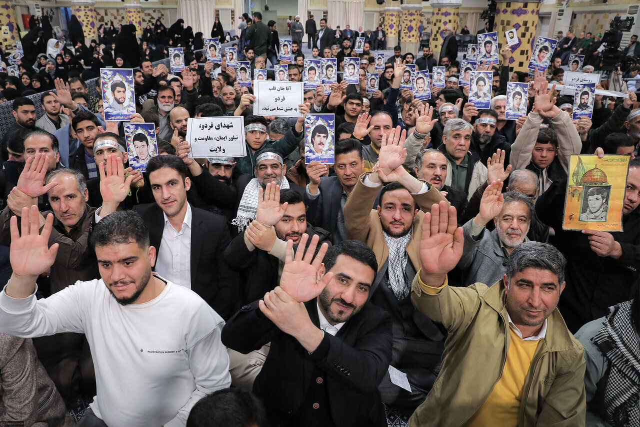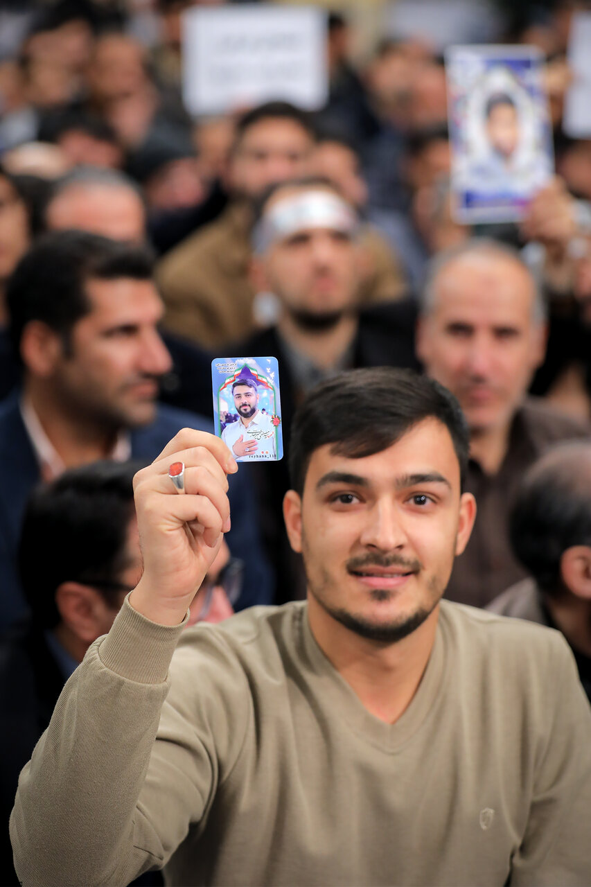به مناسبت ۱۳ رجب، خجسته سالروز میلاد باسعادت حضرت امیرالمؤمنین علی(ع) ، صبح امروز _شنبه سیزدهم دی_ خانواده شهیدان سلیمانی و یاران همراه وی و جمعی از خانواده شهدای اقتدار با حضور در حسینیه امام خمینی(ره) با حضرت آیتالله خامنهای رهبر انقلاب اسلامی، دیدار کردند.