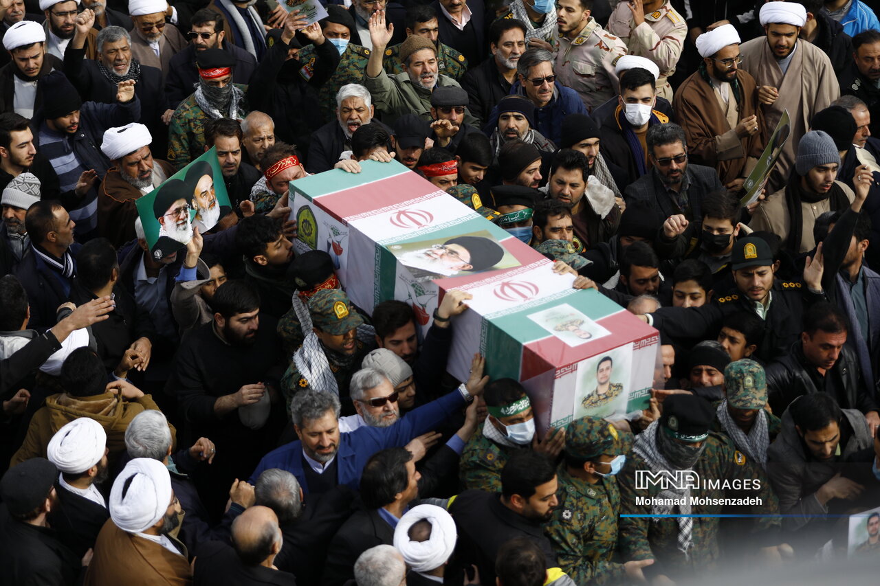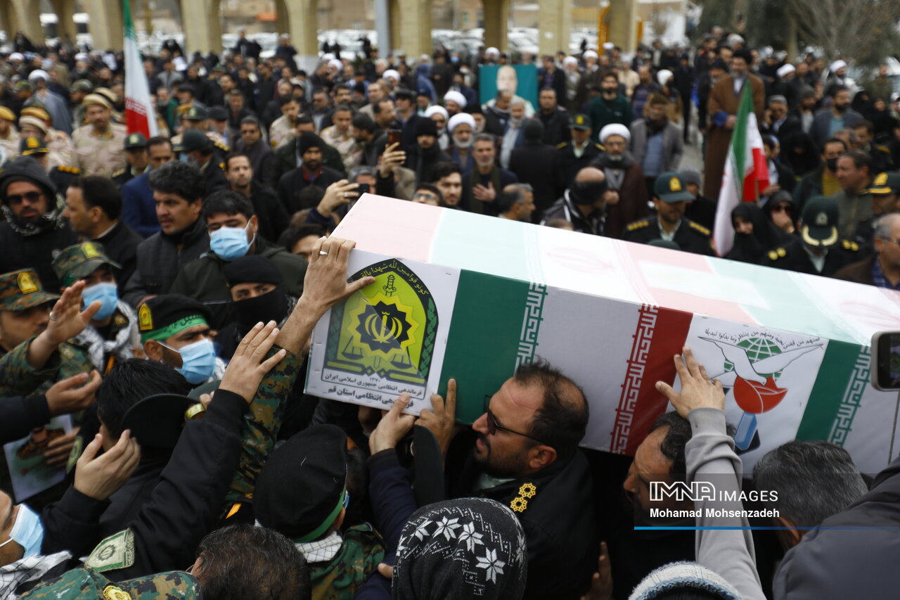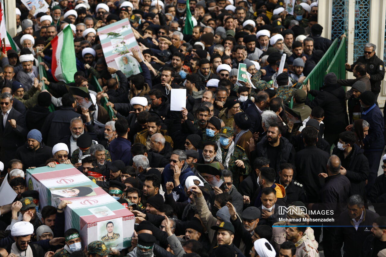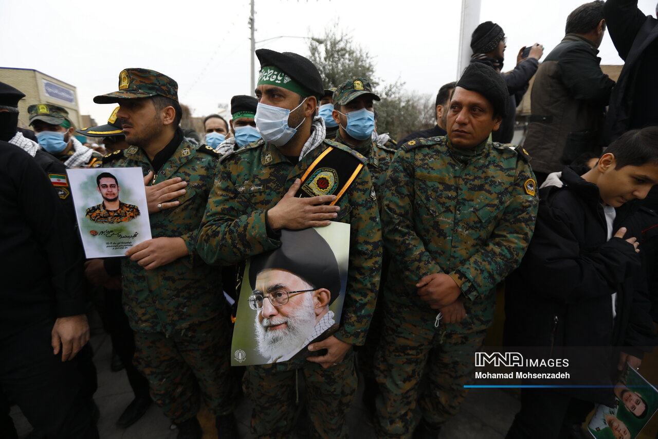 مراسم تشییع دو شهید مدافع امنیت صبح امروز _شنبه بیستم دی_ از امامزاده چهل اختران قم تا حرم مطهر فاطمه معصومه (س) برگزار شد.