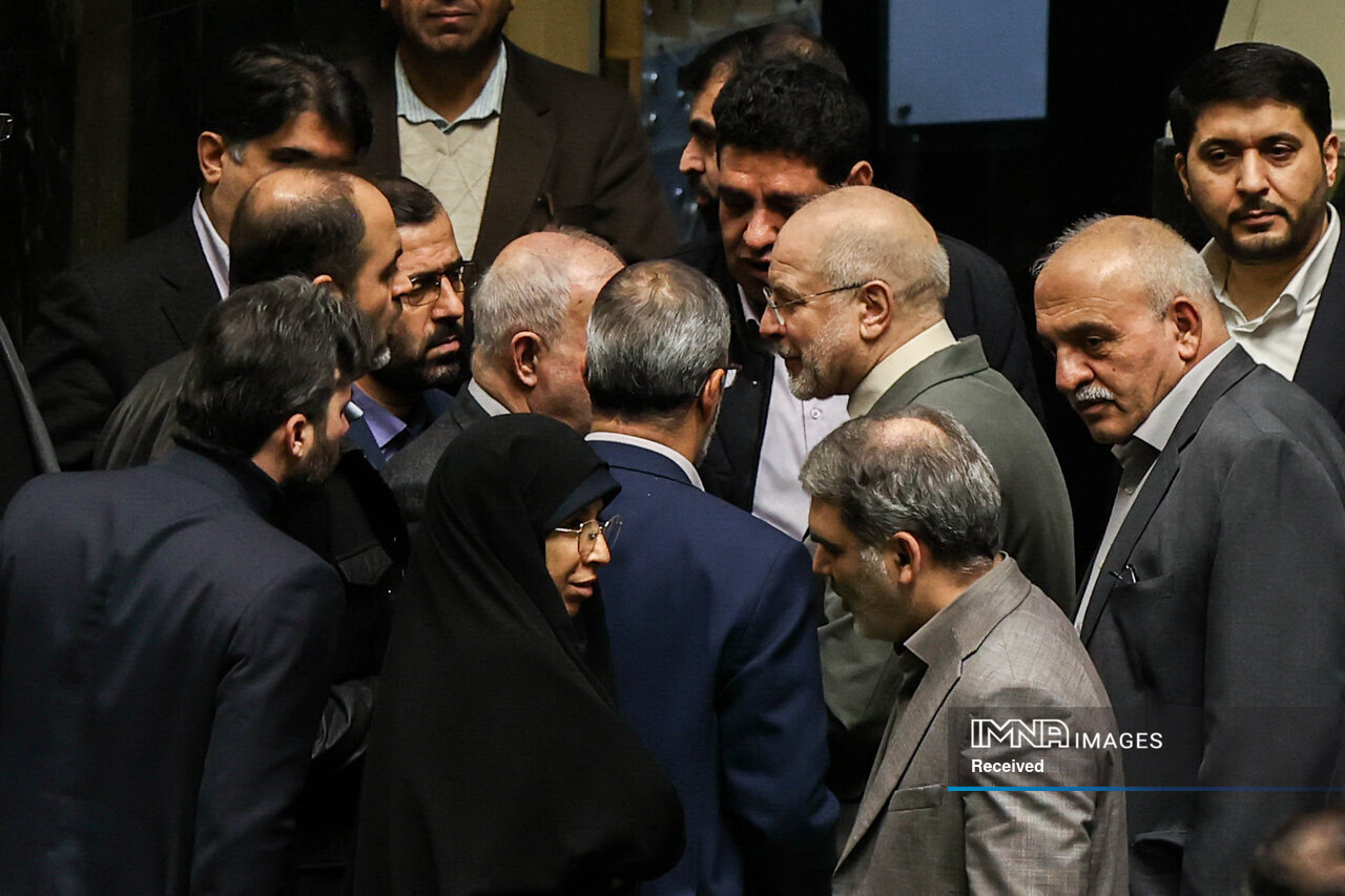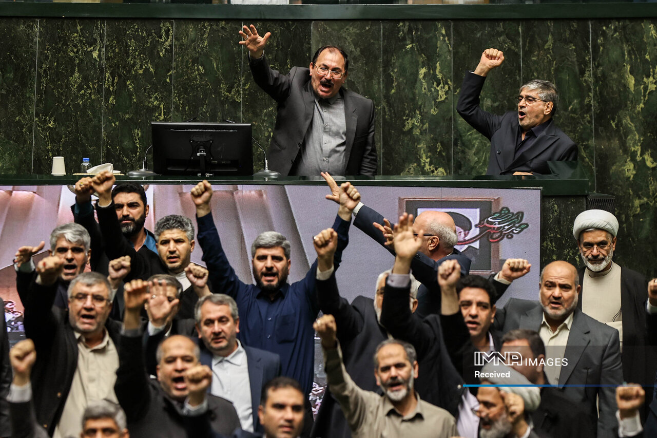 نشست علنی مجلس، صبح امروز _یکشنبه بیست‌ویکم_ به ریاست محمدباقر قالیباف رئیس مجلس شورای اسلامی و با حضور ۲۵۳ نفر آغاز شد. نمایندگان مردم در مجلس هنگام نطق رئیس مجلس شورای اسلامی، با سردادن شعارهایی از جمله مرگ بر آمریکا و اسرائیل اقدامات تروریستی در برخی شهرهای کشور را محکوم کردند.