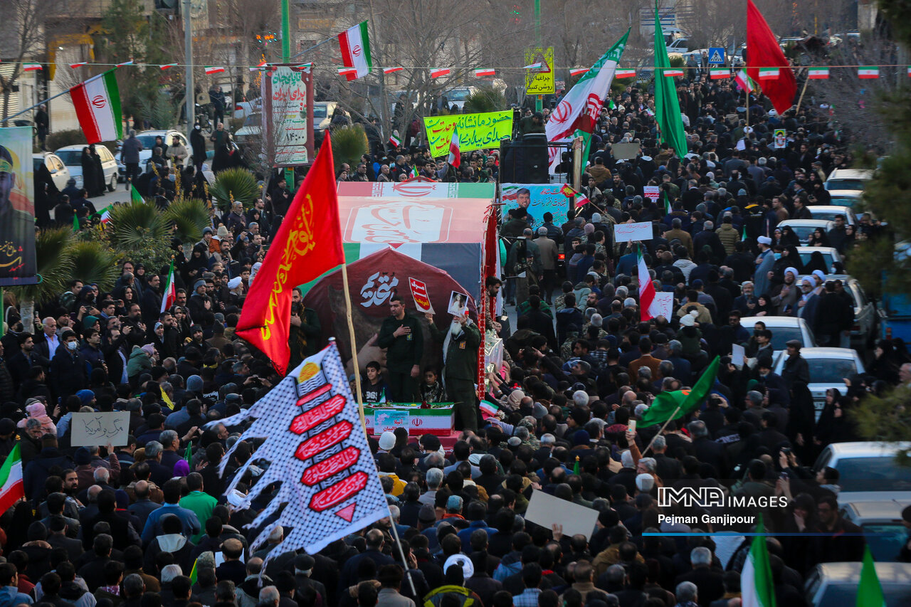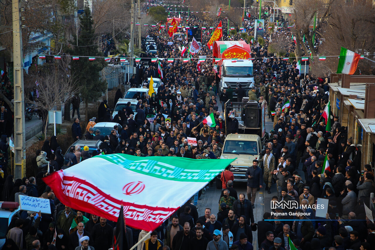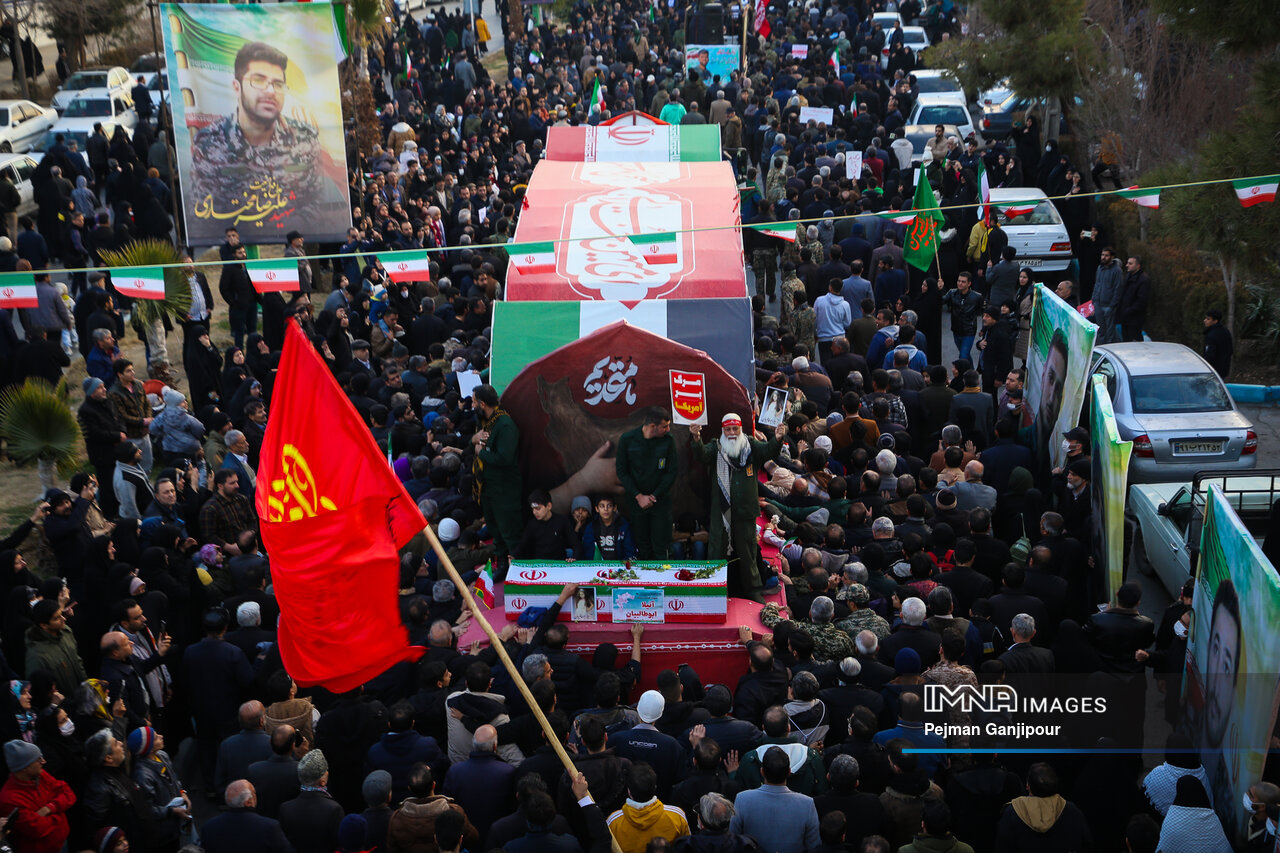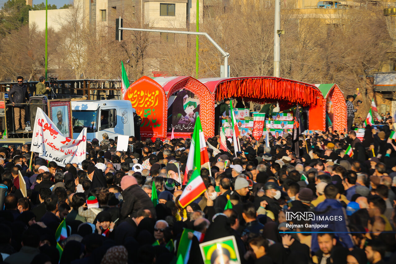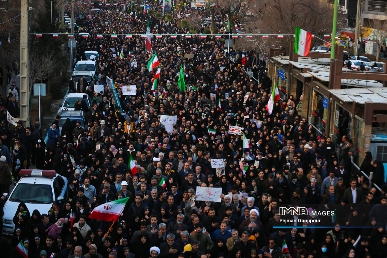مردم اصفهان امروز _دوشنبه بیست‌ودوم دی_ حماسه عظیمی خلق کردند و علاوه بر بدرقه لاله‌های خونین امنیت از میدان بزرگمهر تا گلستان شهدا، نفرت خود از اقدامات تروریست‌های مسلح و اغتشاشگران را فریاد زدند و صف واحد خود مقابل دشمن آمریکایی صهیونیستی را به رخ جهانیان کشیدند.