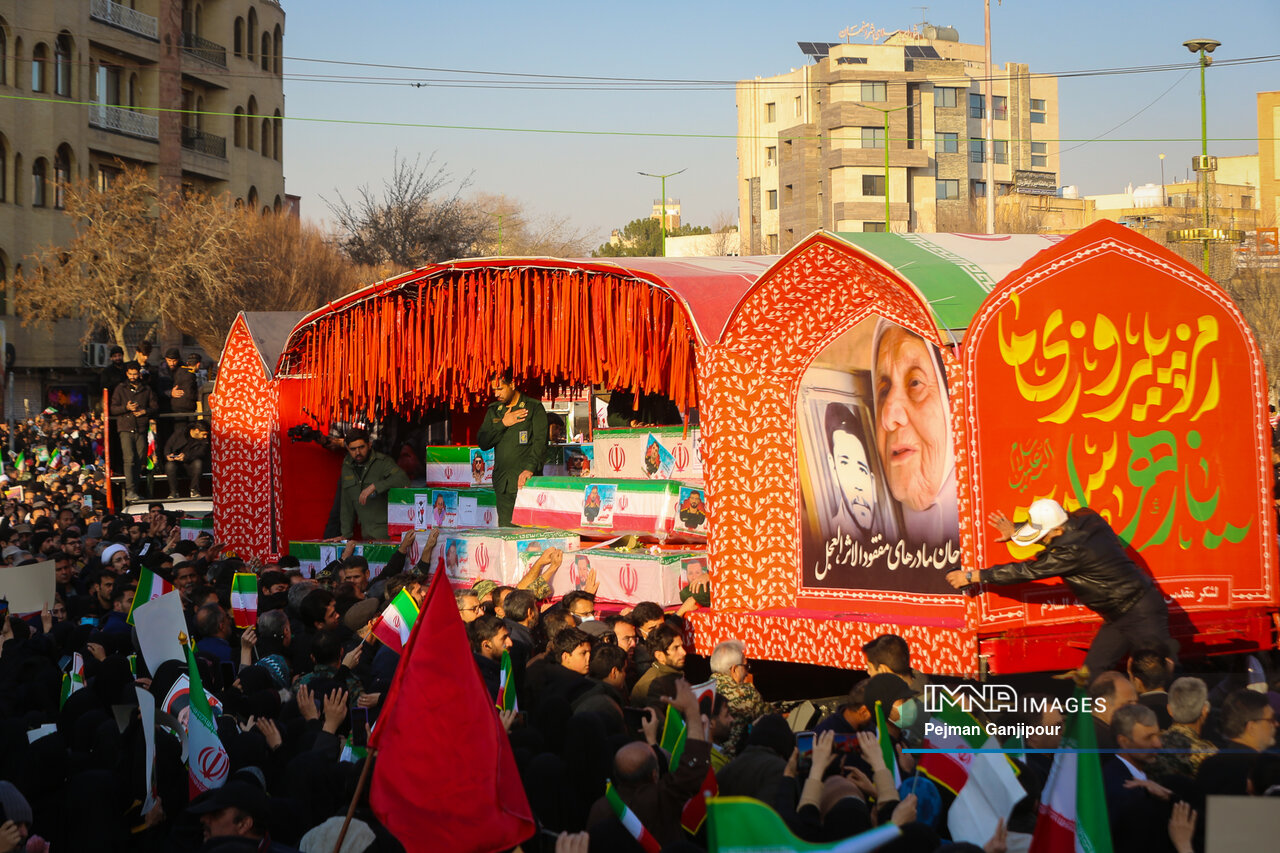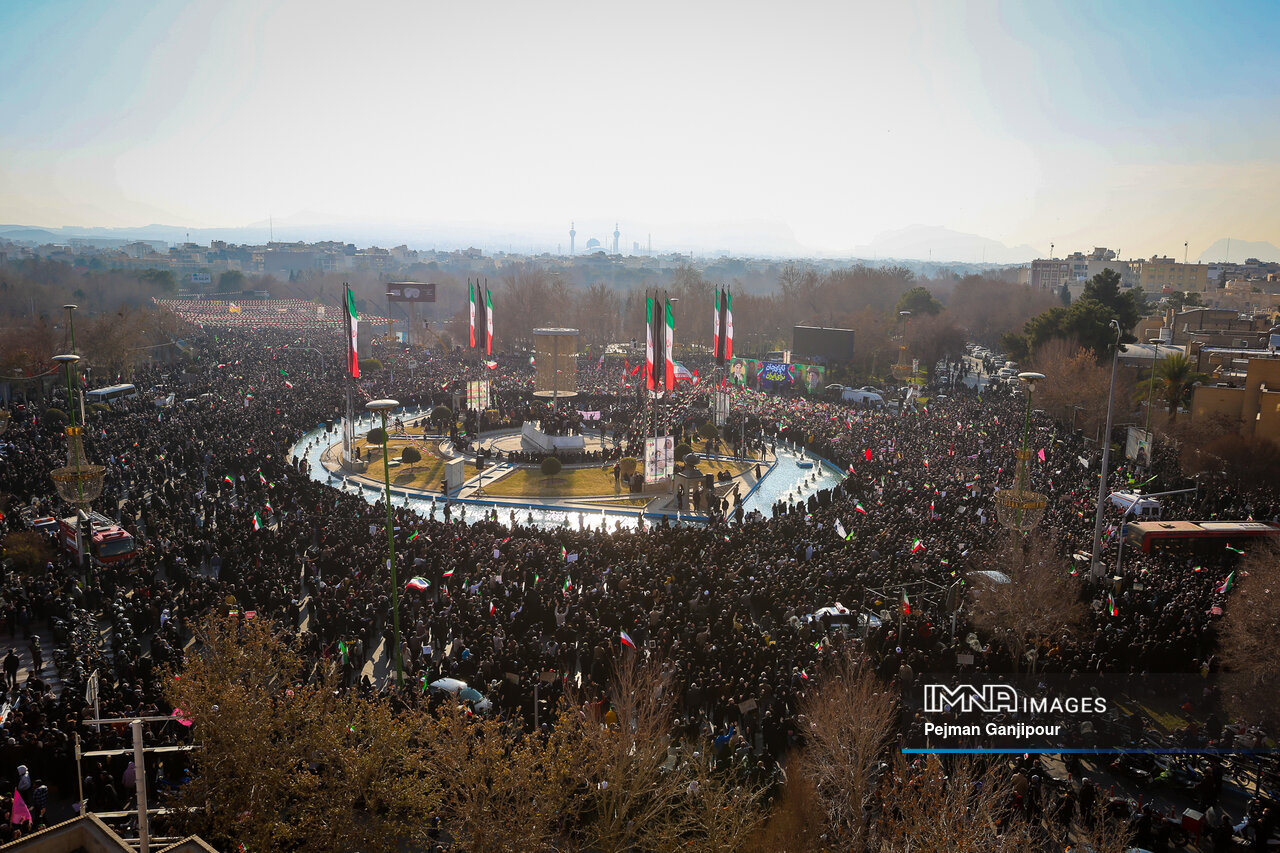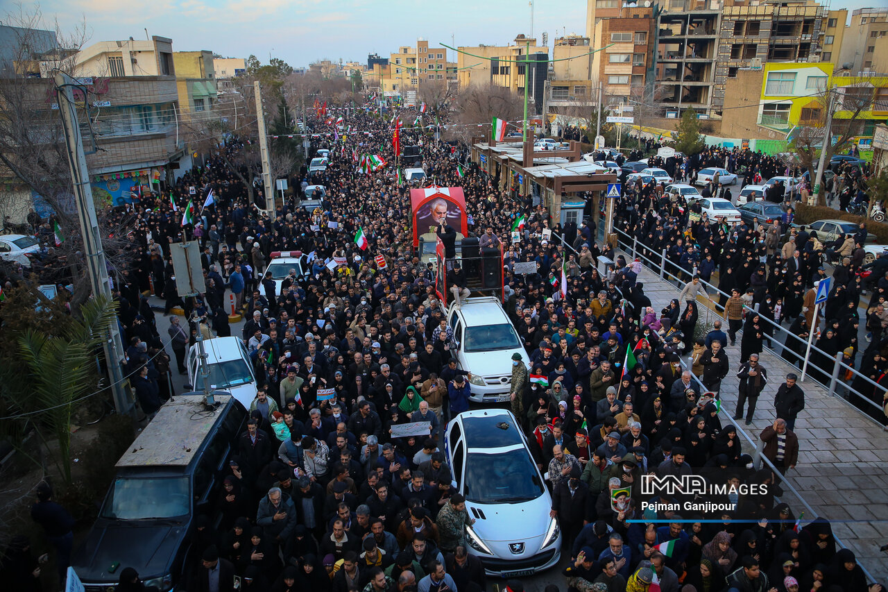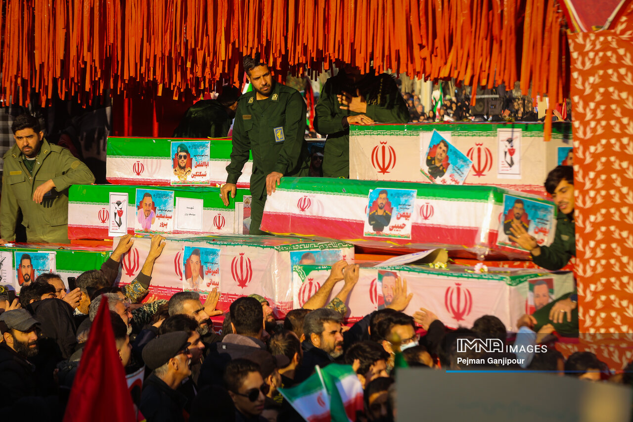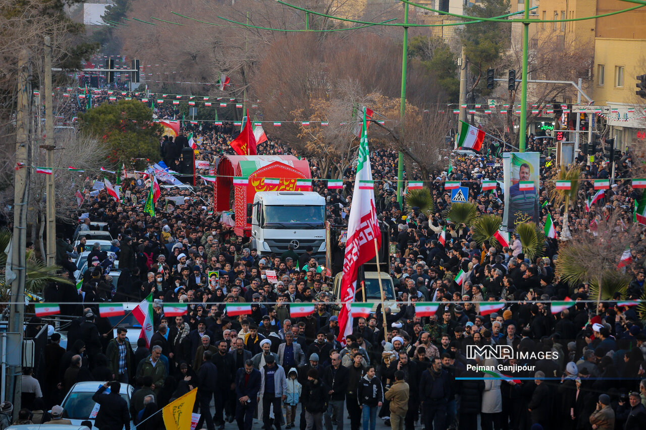 مردم اصفهان امروز _دوشنبه بیست‌ودوم دی_ حماسه عظیمی خلق کردند و علاوه بر بدرقه لاله‌های خونین امنیت از میدان بزرگمهر تا گلستان شهدا، نفرت خود از اقدامات تروریست‌های مسلح و اغتشاشگران را فریاد زدند و صف واحد خود مقابل دشمن آمریکایی صهیونیستی را به رخ جهانیان کشیدند.