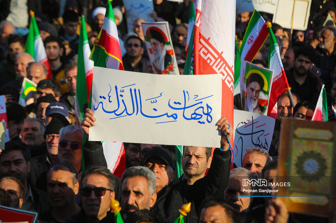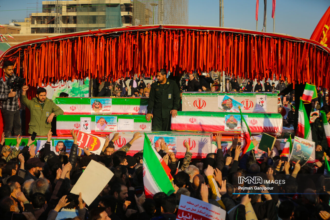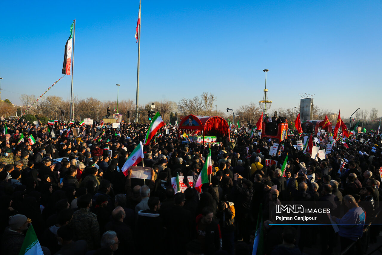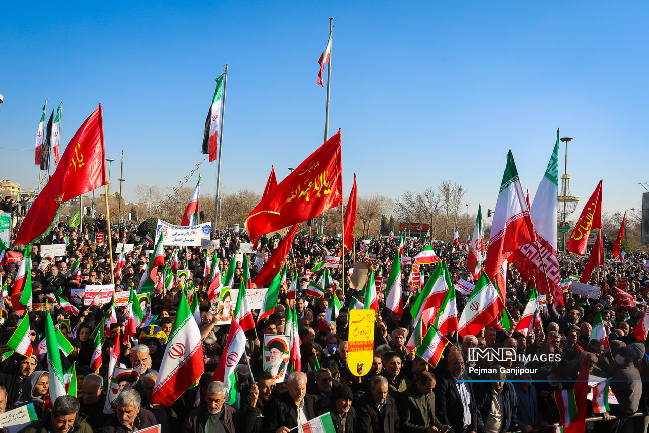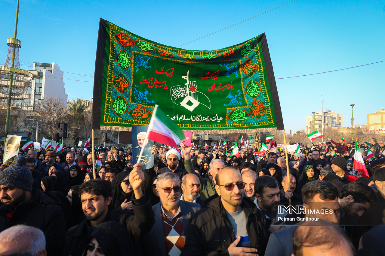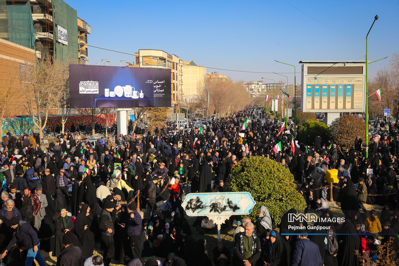 مردم اصفهان امروز _دوشنبه بیست‌ودوم دی_ حماسه عظیمی خلق کردند و علاوه بر بدرقه لاله‌های خونین امنیت از میدان بزرگمهر تا گلستان شهدا، نفرت خود از اقدامات تروریست‌های مسلح و اغتشاشگران را فریاد زدند و صف واحد خود مقابل دشمن آمریکایی صهیونیستی را به رخ جهانیان کشیدند.