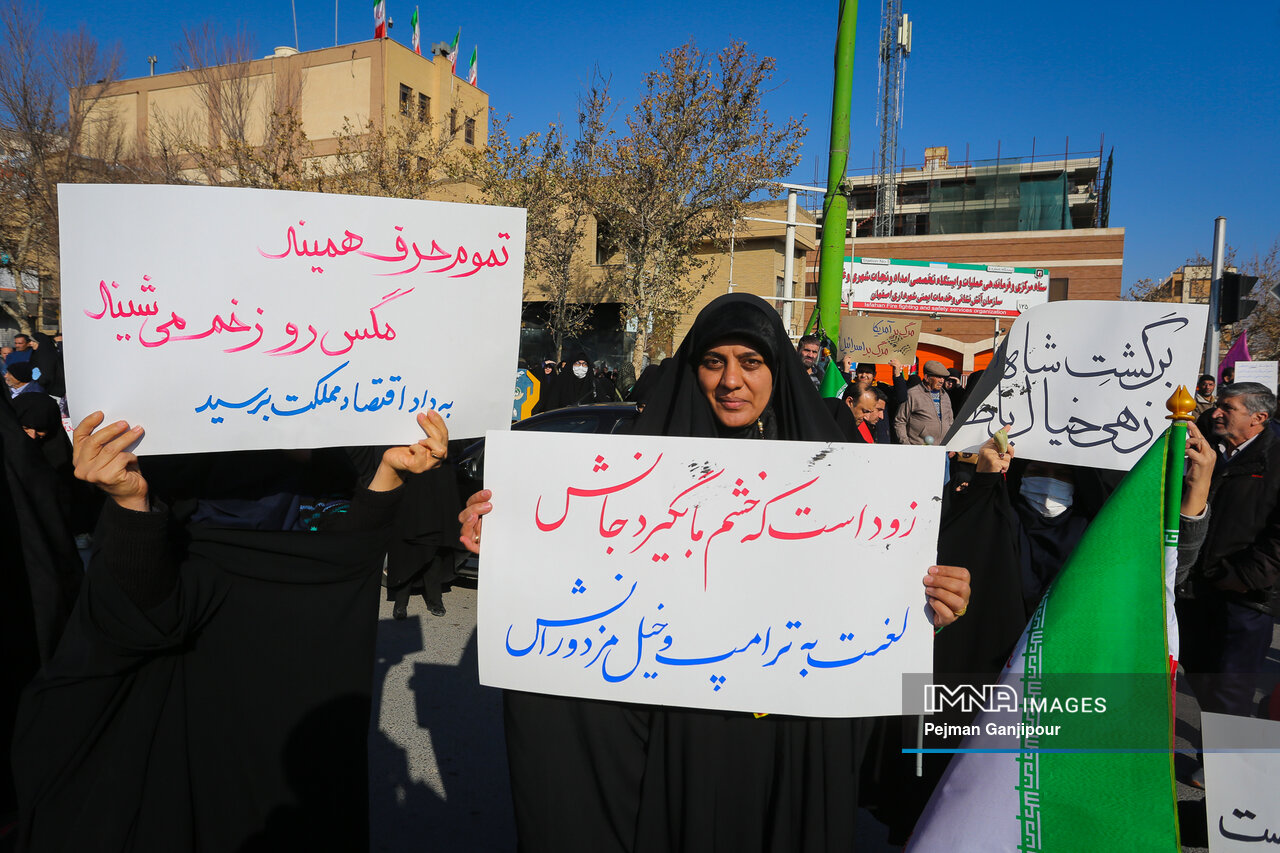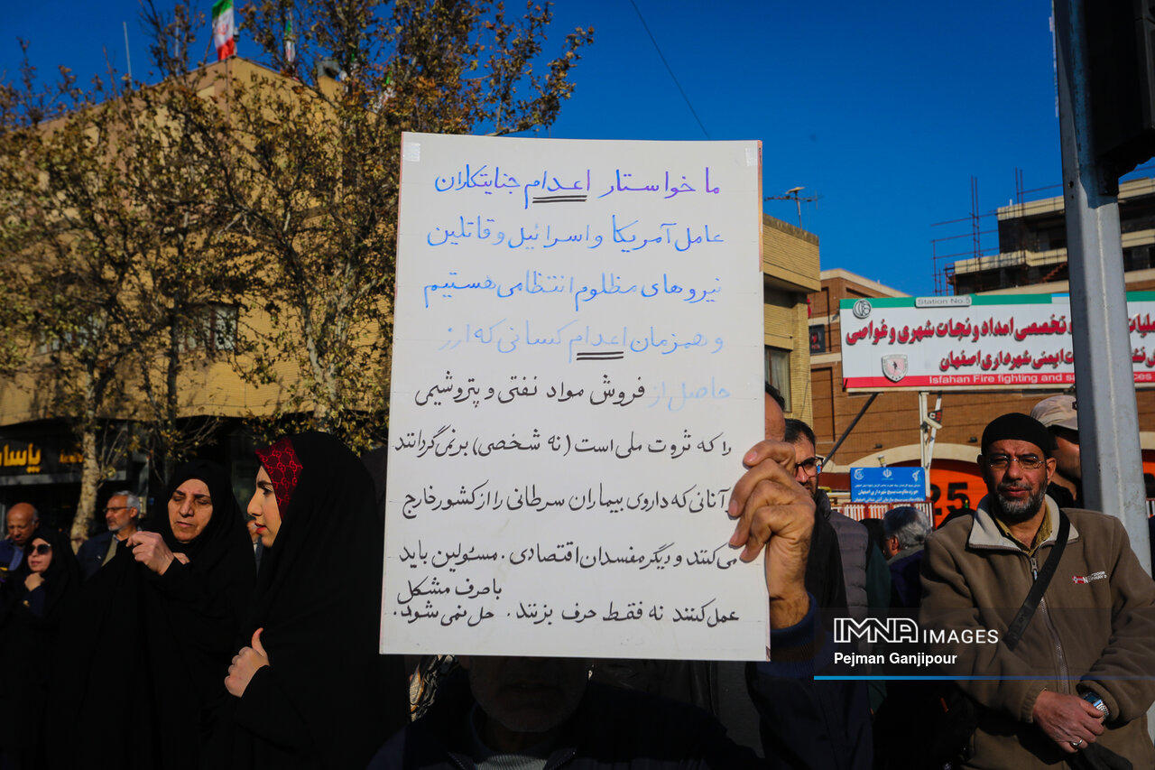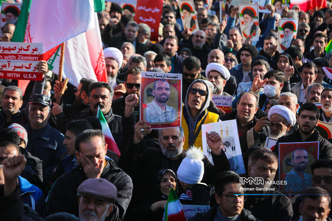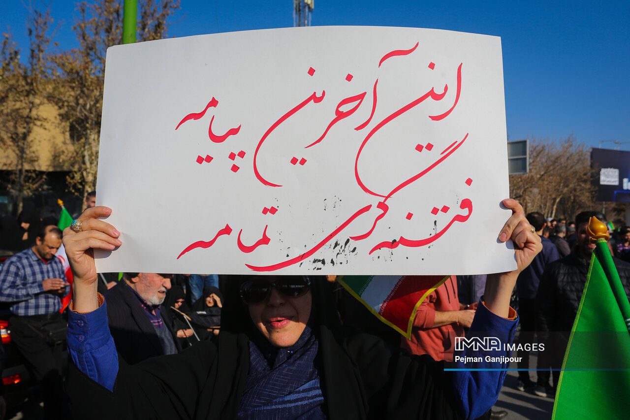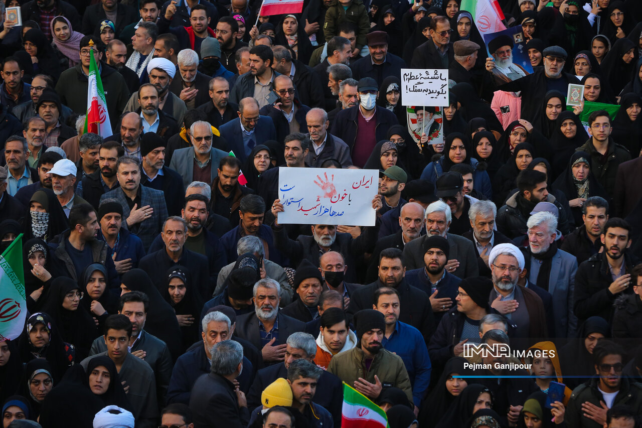 مردم اصفهان امروز _دوشنبه بیست‌ودوم دی_ حماسه عظیمی خلق کردند و علاوه بر بدرقه لاله‌های خونین امنیت از میدان بزرگمهر تا گلستان شهدا، نفرت خود از اقدامات تروریست‌های مسلح و اغتشاشگران را فریاد زدند و صف واحد خود مقابل دشمن آمریکایی صهیونیستی را به رخ جهانیان کشیدند.