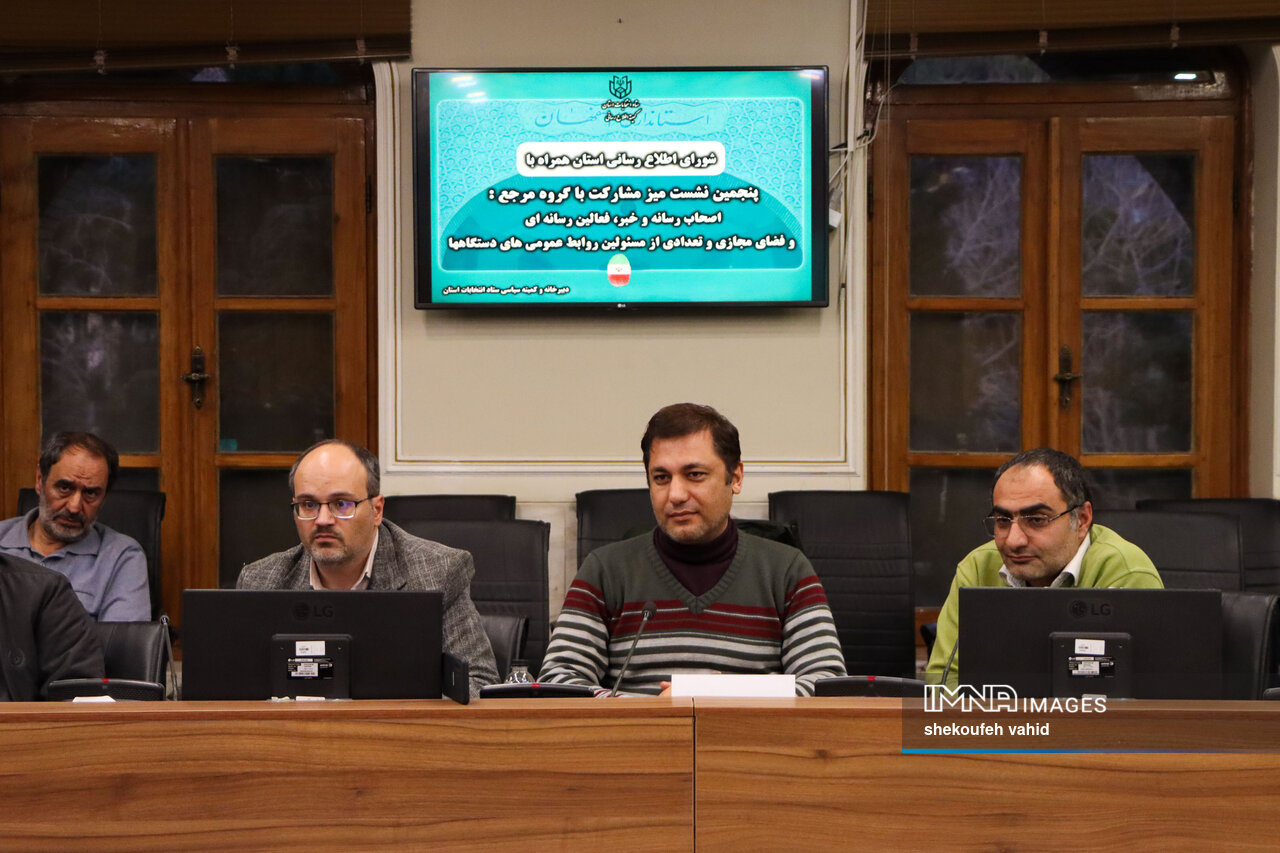 شورای اطلاعرسانی استان اصفهان همراه با پنجمین نشست میز مشارکت با گروه مرجع، اصحاب رسانه و خبر، فعالین رسانهای و فضای مجازی و تعدادی از روابط عمومی مسئولین روابط عمومیهای دستگاههای اجرایی، امروز _چهارشنبه بیستوچهارم دی_ در استانداری اصفهان برگزار شد.