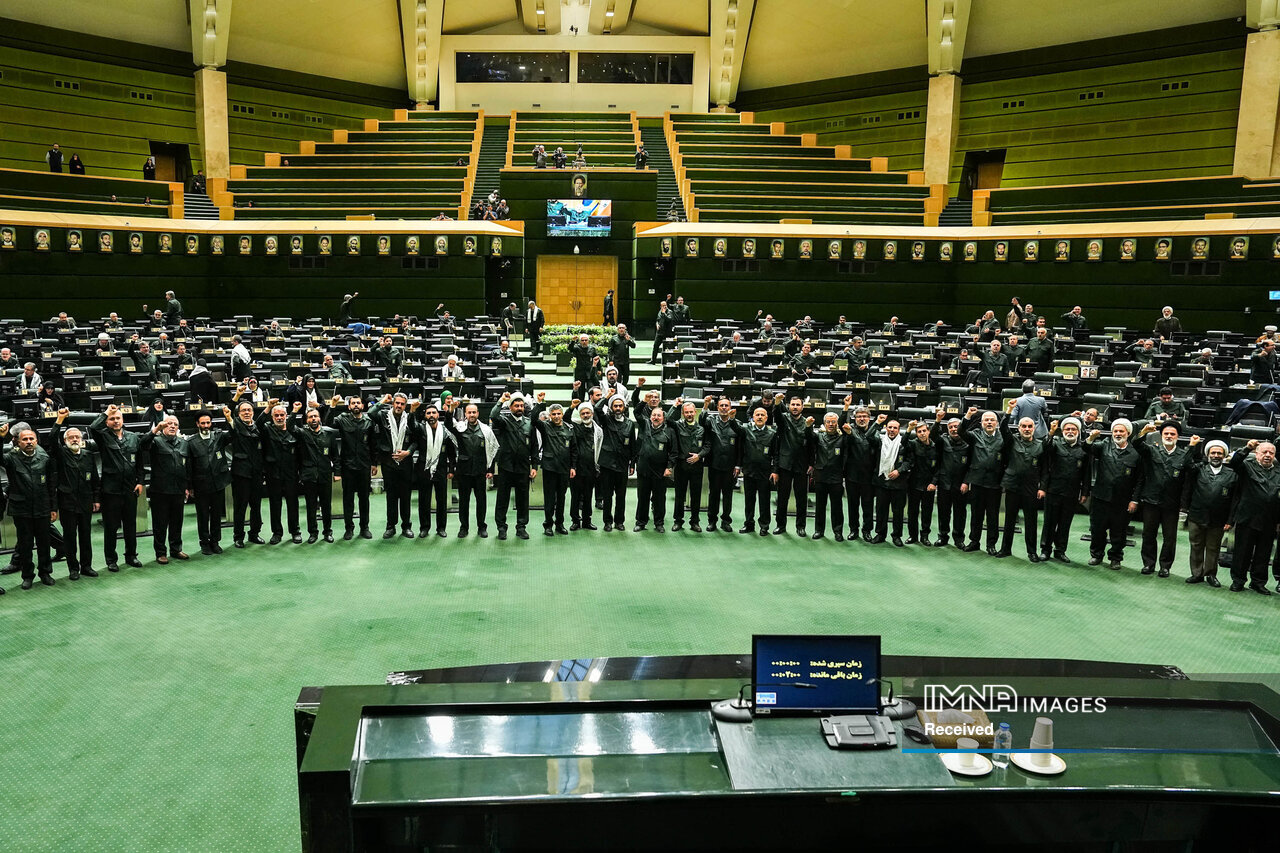 نمایندگان مجلس شورای اسلامی صبح امروز _یکشنبه دوازدهم بهمن_ در آغاز صحن علنی با پوشیدن لباس مقدس و سبز سپاه پاسداران انقلاب اسلامی، اقدام پارلمان اروپا در تروریستی خواندن سپاه پاسداران را محکوم کرده و همراهی و حمایت خود از این نیروی پاسدار انقلاب و بزرگترین نیروی ضدتروریسم جهان را اعلام کردند.