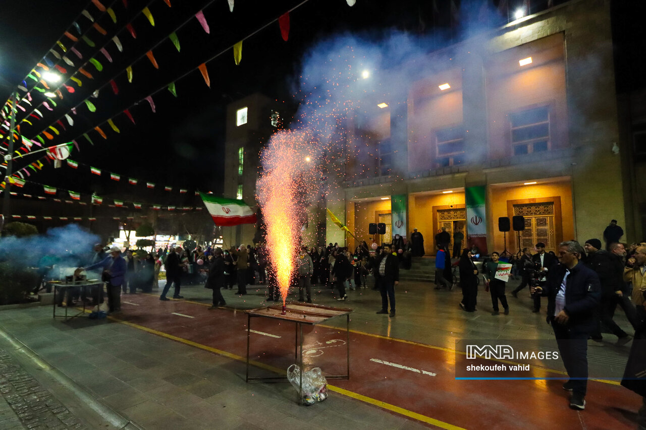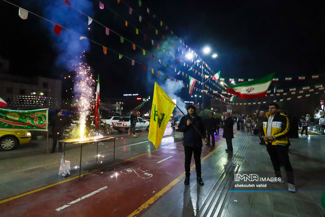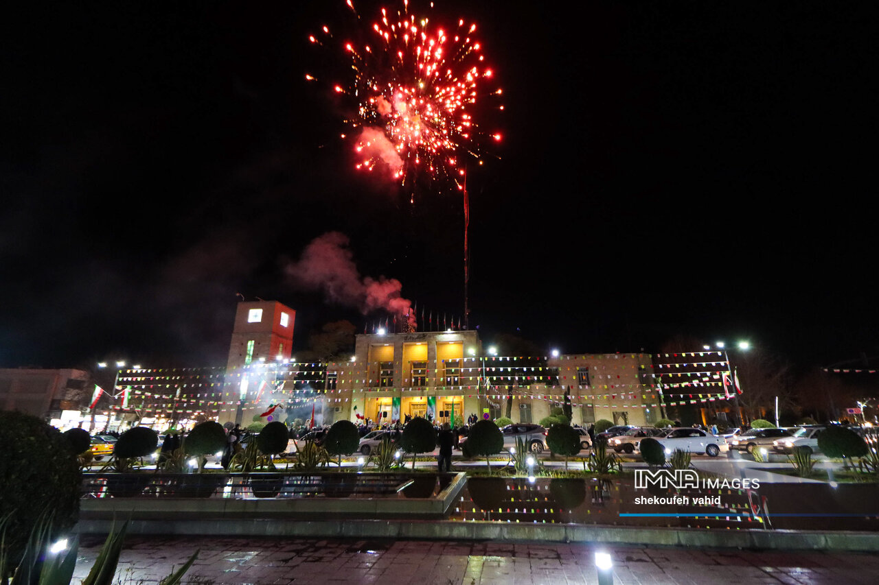 همزمان با فرارسیدن چهلوهفتمین سال پیروزی انقلاب اسلامی، آسمان اصفهان نورافشانی و گلبانگ اللهکبر در شهر طنینانداز شد.